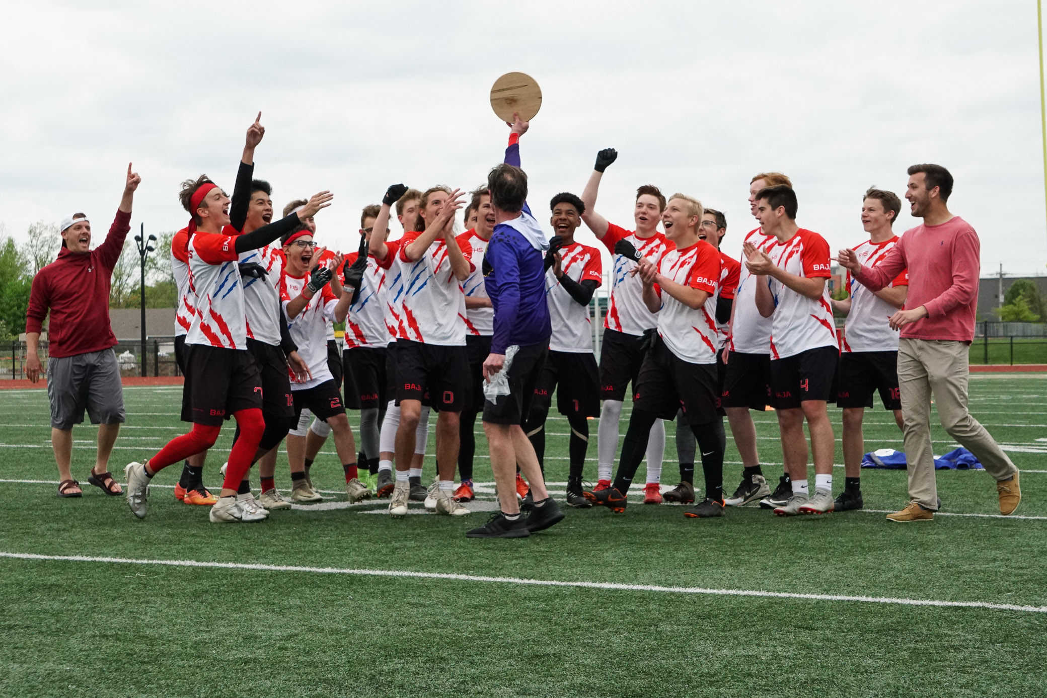 Fishers Baja claimed its first-ever State Championship over Center Grove HS by a score of 9-6 on a cool, windy, and overcast afternoon at Westfield High School. The game was played and live-streamed as part of “Ultimate Day IN Indiana” designed to showcase the sport of Ultimate.